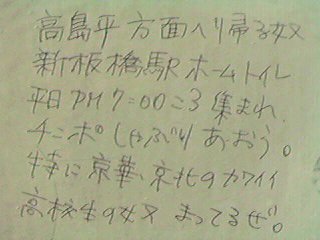ということで新板橋駅に午後7時に行った人の報告をお待ちしています。
