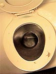 トイレはぼろいです(飛行機もぼろい)。便座にヒビ割れが入っています。