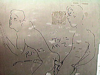 In Japan gay people often use toilet at a station. It is usual that many such scribble is on toilet wall.