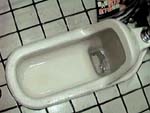 新橋の地下道の外れにあるこのトイレは、ものすごく汚いわけじゃないんだけど、ブキミです。
