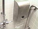 トイレットペーパーを盗めないタイプのホルダーです。JRの駅でよく見かけます。