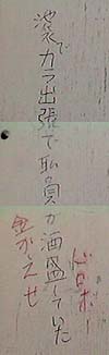 トイレに落書きするなという落書きだけあって、なんかヘロヘロ。