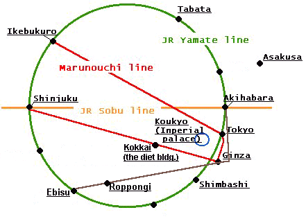 Ikubukuro||tabata||Shinjuku||Asakusa Akihabara||Kokkai gijidou mae(the Diet building)||Tokyo Ginza||Ebisu||Roppongi||Shimbashi