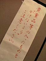 達筆な張り紙がありました。左が前の方でうんこしろとか、手を洗えとか、そんな内容。「ドアの上から手を入れて、かけてあるカバンを取ってく人がいるから」と妻は言っています。本当にそんな奴いるのか?