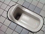トイレも広くて、とてもキレイです。紙はないけど。 上の左側の便器の写真、よくみると便器の両脇、足の位置だけタイルの色が違う。足はここだと無言で訴えている。