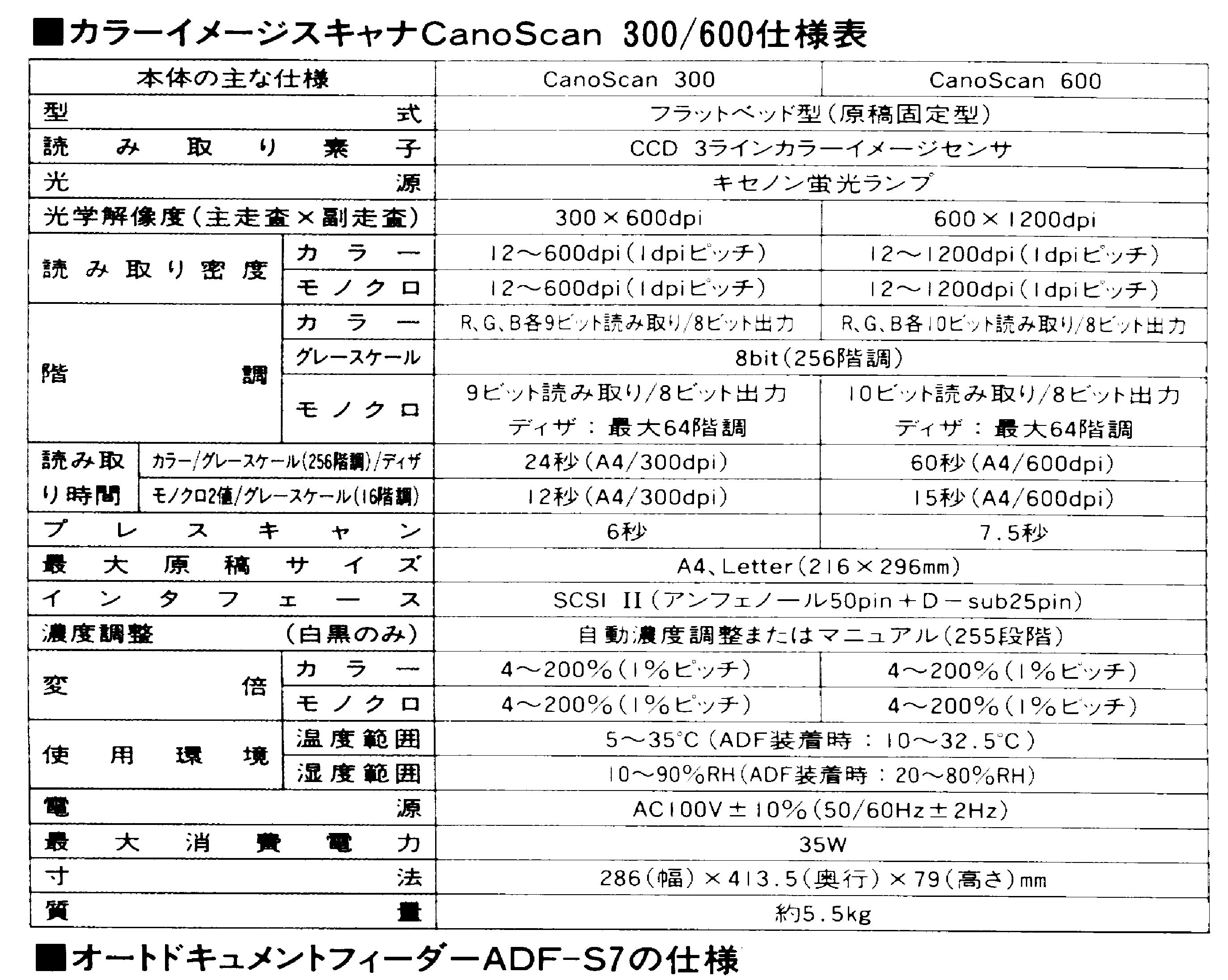 CanoScanはSCSI接続タイプのスキャナで,本体以外にオプションで各種パソコン用接続キット(Windows用/Mac用)を購入します。