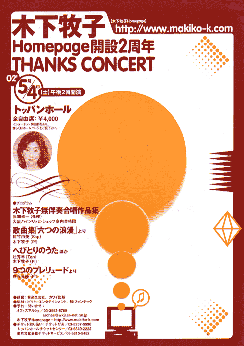 出演 豊田喜代美(Sop)、三原剛(Bar)、木下牧子(Pf)