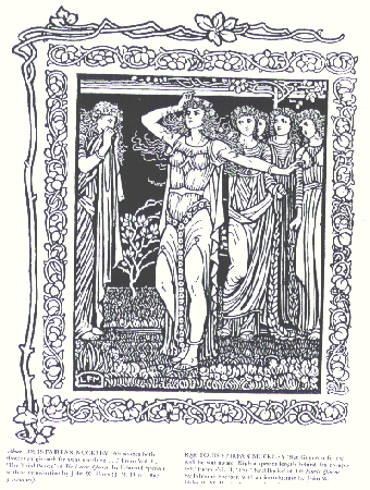ルイス・F・マックリー Louis Fairfax Muckley (1862-1926 ) ウースターシャー州ストアブリッジで、ガラス細工師ジョシュア・マックリーの息子として生を受ける。マンチェスター美術学校に学び、バーミンガム工芸ギルドに参加する。 ラファエル前派最後尾であるバーミンガム・グループの一人と目される。 美術学校ではバーン=ジョーンズのステンドグラス作品などに影響され、1885年10月にバーン=ジョーンズが学校を訪れた時には会っている 可能性がある。彼はアーツ・アンド・クラフトの理想に忠実に、絵画だけでなくガラス・彫金・製本・イラスト作成に取り組んだ。 1887年グロスヴィナー・ギャラリーに出展、ロイヤル・アカデミーには1890年から1901年まで数回出展した。 しかし油絵は少数で、現在はほとんど残されていない。 しかし彼がイラストを入れた2冊の本、スペンサーの「妖精女王」(Faerie Queene)(1897)とR.D.ブラックモアの「Fringilla」(1896)は高く評価されている。 高名な草花画家ウィリアム・ジェイビズ・マックリーは縁戚の人かと思われる。