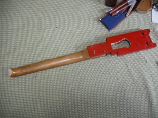 ネックからさらにヘッドを切断。もう後戻りできない。 ペグを後方に付けるためだが、これがうまく行くかはギャンブル。高さがあるのでそのまま付けたのではうまく弦を巻き取れない恐れがある。それで変則的なペグ取り付けを考えている。 |