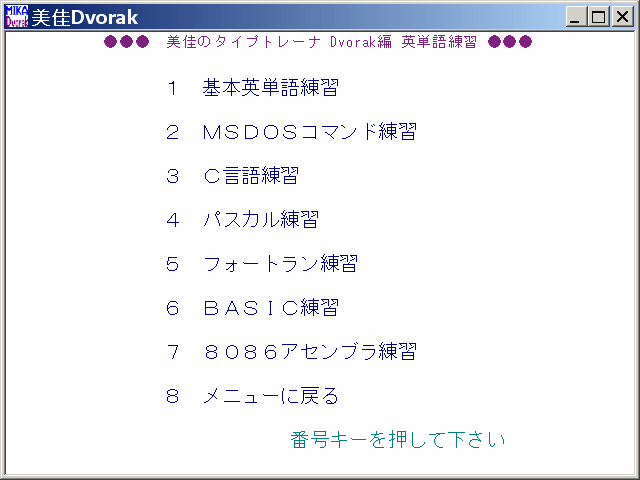 ”ü‰À‚̃^ƒCƒvƒgƒŒ[ƒiDvorak•Ò‰p’PŒê—ûKƒƒjƒ…[‰æ–Ê