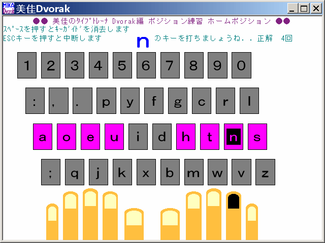 美佳のタイプトレーナDvorak編ポジション練習ホームポジション