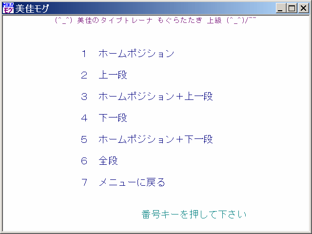 美佳のタイプトレーナもぐら叩き編上級メニュー画面