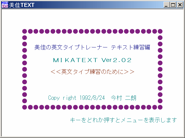 美佳の英文タイプトレーナテキスト練習編タイトル画面