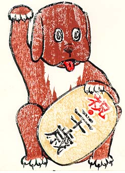戌年です。犬は品種によって顔も体型も全く違うので、どれにするか悩みました。結局特定のモデルのない雑種です。あえてモデルを挙げるなら、「のび太の大魔境」に出てきた「ペコ(クンタック王子)」でしょうか。