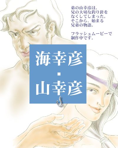 古事記にある物語「海幸彦・山幸彦」を オリジナルストーリーのフラッシュムービーで制作中。 このイラストは、登場人物のイメージです。