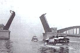 それともう一つ、この橋の特徴は「跳ね橋」で全長約250mのうち、両側22mが跳ね上がり、