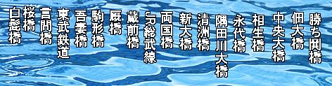 今回は、その隅田川、浅草の少し北の白髭橋から東京湾に注ぐ最後の橋、勝鬨橋迄の隅田川18橋巡りをご案内します。