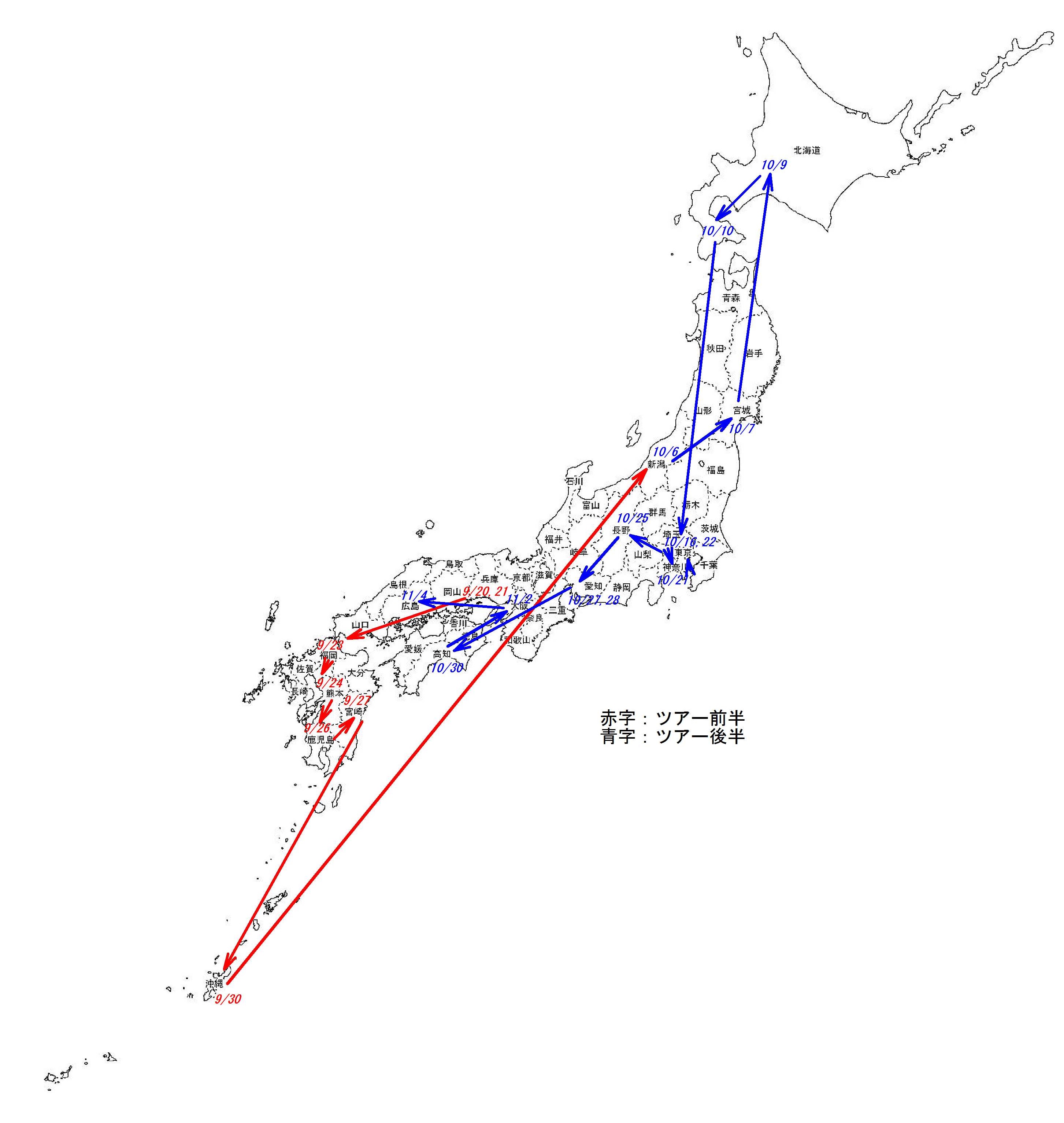 9月20日(水)の神戸を皮切りに、約2ヶ月に渡り、イベントを含めて20箇所のライブ・ツアーが行われた。