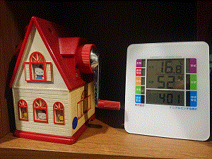 1月2日(火)の天気は晴。6時、外気温0.3℃に対し「室内16.6℃、相対湿度50%」。