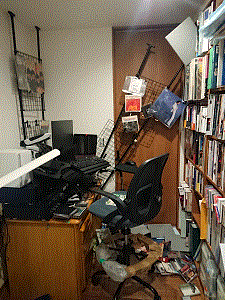 幸いだったのは今は私の秘密基地?唯一の居場所?の(10年位前まで子供が使っていた)学習机の上に置いたオーディオ製品、据え付けられたノートPC群が何の問題も無かったことです。