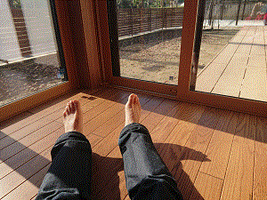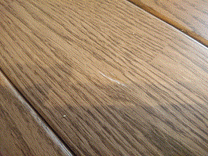 そして無垢床が椅子のキャスターで傷つくのを恐れる小市民の私が敷いた(冷え冷えと冷たい)樹脂の透明なマットのお陰で床には傷はありませんでした。