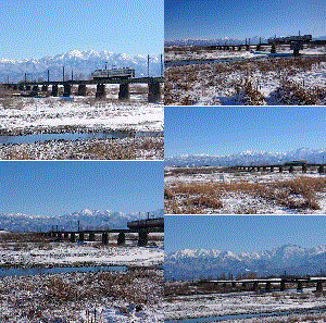 その常願寺川にかかる鉄橋を富山地方鉄道の電車が通り過ぎていきます。