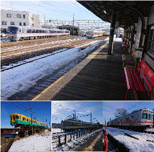 公共交通機関 富山地方鉄道の電鉄富山駅から越中荏原駅まで電車に乗り、常願寺川の堤防から立山連邦の眺めを観光してきました。