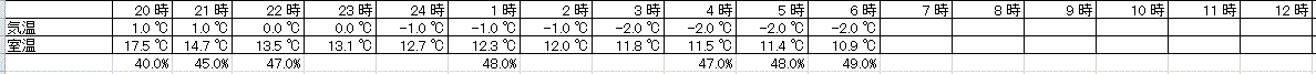 途中、深夜未明にも温度の確認とメモのため、暖房を停止している中、布団から普通に起きてもいました。