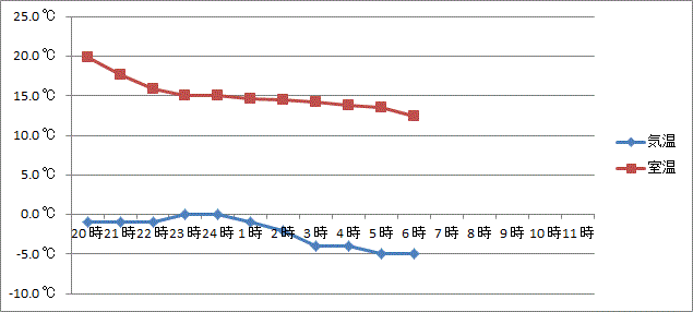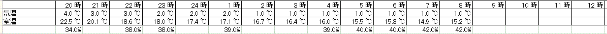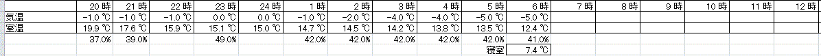 寝室の温度の暖め方と20時時点の温度の測定の仕方を見直し、もう一度、測定してみたいと思いました。