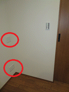 更に私が楽しく過ごす場所になるように、床から約25pの標準の位置に情報コンセント(電源4口、テレビ・アンテナ、イーサネット・ポート)、追加で床から約80pの位置にコンセント(電源4口)を設けてくれました。