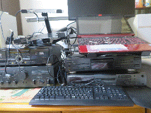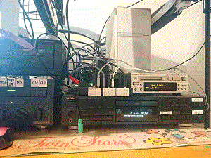 学習机の上に1980年代やそれ以降に購入したオーディオ製品を積み上げます。