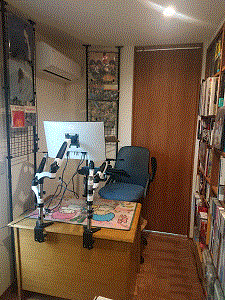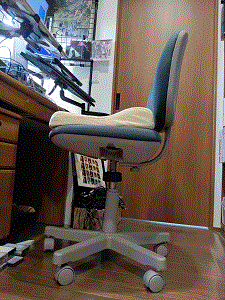 ただ(使い道が無いと断捨離候補だった赤い)椅子に座り、学習机に固定したデュアル・モニターアームにあるディスプレイを見上げながらPCを操作するのは身体に負担がかかるのは問題です。
