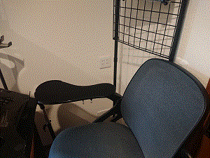 でも椅子の背もたれ、椅子に固定したサイド・テーブルが壁に当たります。