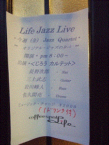 今宵は武蔵中原Coffee Spot LIFEのじろうらぼ横浜 THUMBS UPでのザ・ショッキングカルテットで拝見している方々。