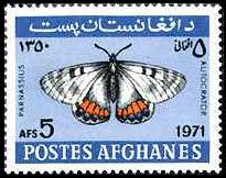 アフガニスタンの昆虫切手アフガニスタンは紀元前に古代ペルシャ帝国の一部となり、19世紀に英国保護領となりました。1919年に王国としてイギリスから独立。1973年に無血クーデターで共和制へ移行しました。ただし、1978年に軍事クーデターで親ソ政権が誕生し、翌79年にはイスラム勢力が巻き返し親ソ政権を打倒したことから内戦状態に陥りました。1988年に国連による和平交渉が成立しソ連軍は89年までに撤退を完了し92年には社会主義政権が崩壊しましたが、その後はイスラム勢力各派が入り乱れて第2の内戦状態に入りました。