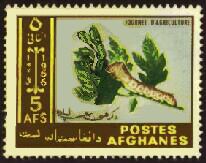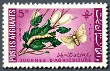 このアフガニスタンから1963年にカイコを描いた農業の日切手4種が発行されました。図案は一種類で、色違いの4種です。