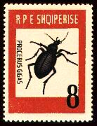 アルバニアの昆虫切手東ヨーロッパのバルカン半島の小国アルバニアから1963年に4種のヨーロッパを代表する甲虫を描いた切手を発行されました。切手全体は二色刷りで地味ですが甲虫自体は単色ながら正確に描かれています。