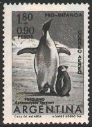 続いて1961年にエンペラーペンギンの親子を描いた児童福祉用寄附金付きの航空便用の切手1種が発行されました。これらは単色ですが味わいのある図案の切手です。