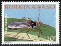 このブルキナファソから1992年に昆虫を描いた切手4種が発行されました。