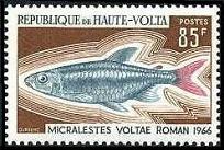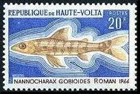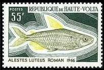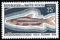 オートボルタ共和国から1966年に魚類を描いた凹版切手7種が発行されました。