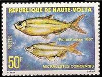 ブルキナファソから2001年に魚類切手6種が発行されました。