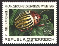 このオーストリアから1967年に第6回国際植物保護会議記念切手としてコロラドハムシを描いた凹印印刷の奇麗な切手が発行されました。