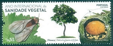 このポルトガルから2020年に植物と昆虫の成虫と幼虫を描いた国際植物防疫年記念切手4種が発行されました。