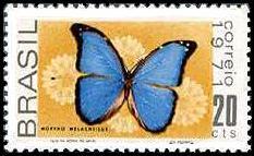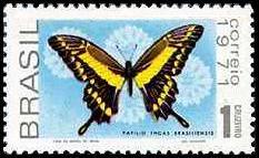 ブラジルの昆虫切手ブラジルは、南米大陸の約半分を占める世界5位の大国で、全長6240kmのアマゾン川が北部を西から東に流れ、国土の60%以上をブラジル高原が占めます。1500年以降ポルトガルの支配を受け、1808年には本国にナポレオンが侵攻したことからポルトガル王室がブラジルに避難しリオデジャネイロを首都としました。1822年にポルトガル王室の帰国後もブラジルに留まった皇太子が独立を宣言し、1889年には共和制に移行し1995年には現カルドゾ大統領が誕生しています。ブラジルは鉱物資源に恵まれると共に世界一のコーヒー生産の農業大国で中南米一の工業国でもあり特に自動車産業は盛んです。