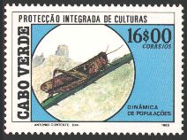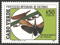 このカーボベルデから1988年に昆虫を描いた農業保護記念切手6種と農業開発国際機構を描いた小型シート1種が発行されました。