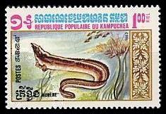 民主カンボジアから1983年に東南アジア特産の珍しい魚類を描いた切手7種が発行されました。