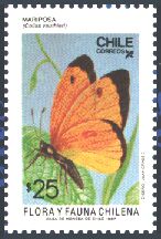 チリの昆虫切手チリは、アンデス山脈が走り標高6800mを超える山々がそびえます。インカ帝国の一部でしたが、16世紀以降スペインの支配を受けました。1810年に自治政府を樹立し1818年に独立を達成し、1879年から1884年までの対ボリビア、ペルーとの太平洋戦争で勝利し領土を拡大しました。1932年以降、民主的な政権交代が続き、1970年に選挙でアジェンデ大統領が誕生し社会主義政権が生まれました。しかし1973年の軍事クーデターでアジェンデ大統領は死去し1974年から軍政に入ることになる。1989年に大統領選挙が行われ1990年に民政に復帰しました。
