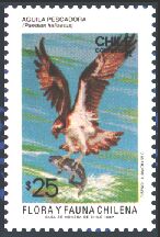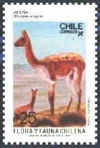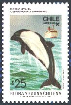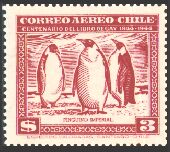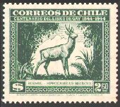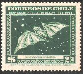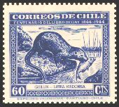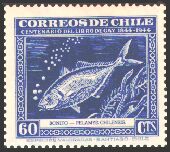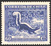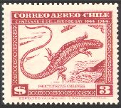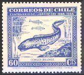 1948年にチリで発行された、チリの動物と植物とに関するゲイの著書出版100年記念切手25種の中に、哺乳類6種、鳥類5種、爬虫類1種、魚類3種が描かれています。単色刷で、同じ図案のものが3色あり、60¢は青、2$は緑、3$は赤で印刷されています。