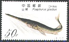 中華人民共和国の通常切手として、1994年に4種のすべてチョウザメで統一した切手が発行されました。