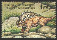 このコモロ・イスラム連邦共和国から1999年に、恐竜と原トンボを描いた切手12種セット(小型シート)が発行されました。